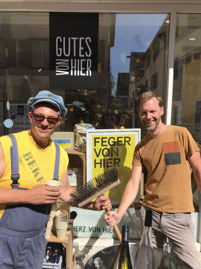 Ehe das Fest so richtig los geht muss die Gass vor der Ladentüre natürlich sauber sein. Glücklicherweise verfügen wir über gute Beziehungen zu den lokalen Profis auf dem Gebiet der Straßenreinigung, den "Kleinen Fegern", die uns zuverlässig alljährlich eine Chefvisite abstatten. So ist es auch in diesem Jahr vorgesehen. Wir rufen alle an schwäbischer Sauberkeit Interessierten auf, dieser Demonstration der Kehrkunst beizuwohnen und freuen uns entsprechend auf und über regen Besuch!